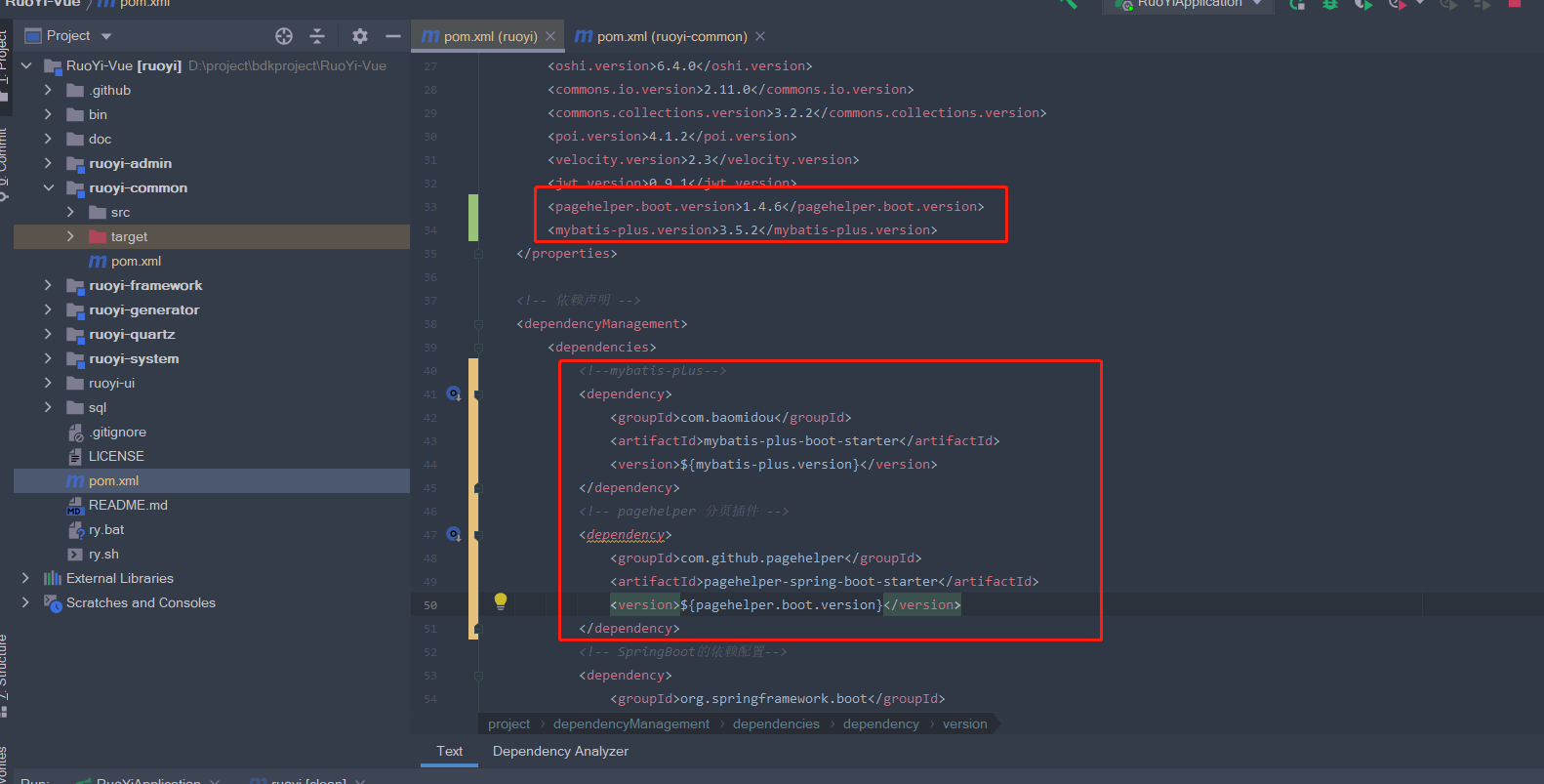 2.2、在最外层的pom文件中申明mybatis-plus和分页的版本