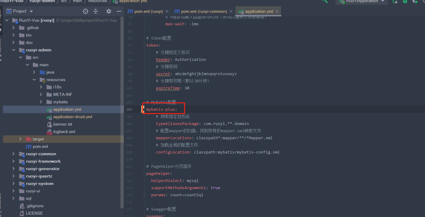 1.3、在applelication·yml修改redis配置,application-druid·yml中修改mysql配置